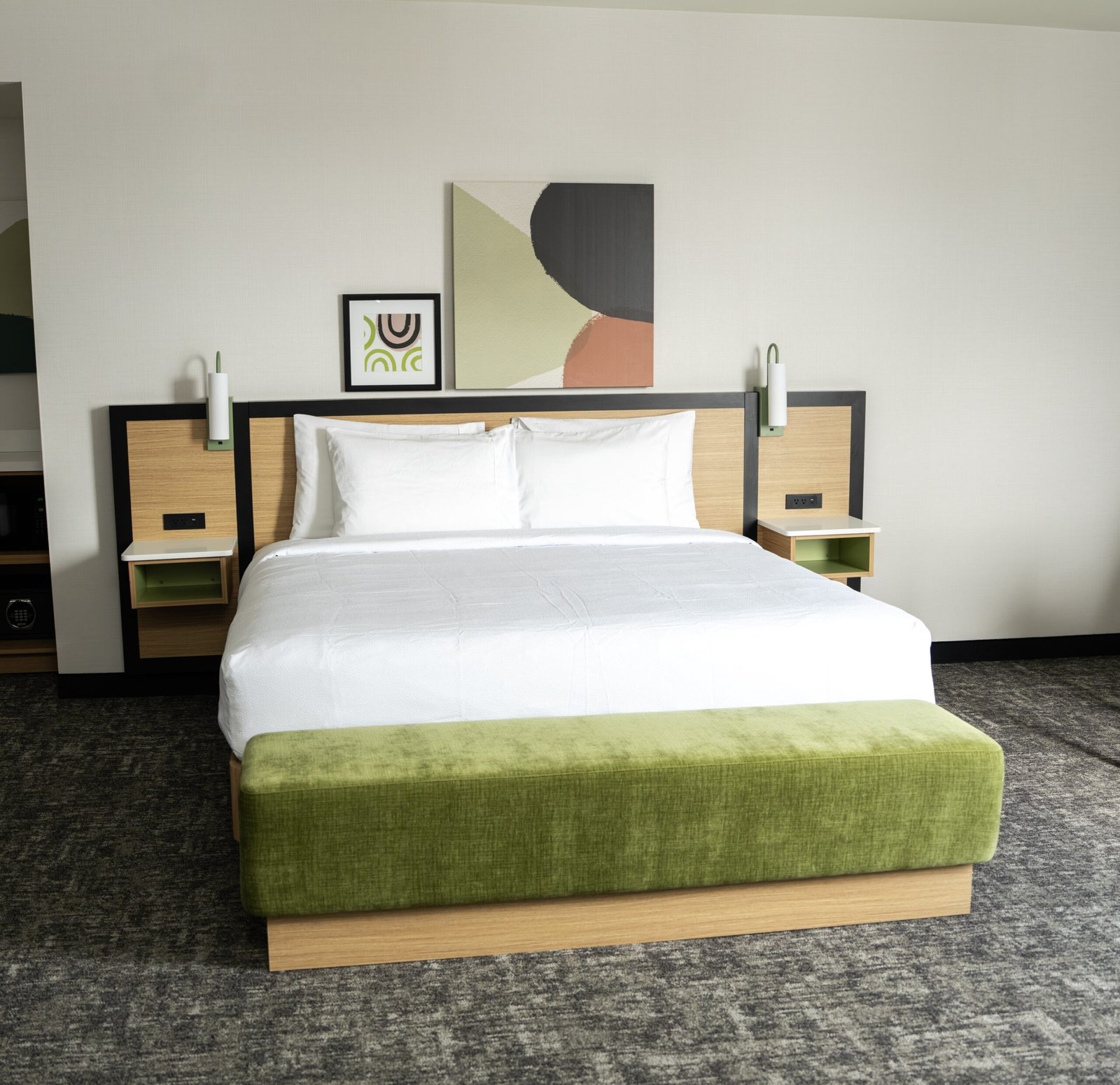 Lorsque nous avons été invités à collaborer à la réalisation du tout nouvel hôtel Hyatt Place Montréal Aéroport, notre équipe a accueilli avec enthousiasme l’opportunité de donner vie à cette vision architecturale. Participer à un projet hôtelier d’envergure est une source constante de motivation, d’autant plus lorsque notre expertise est sollicitée de la fabrication jusqu’à l’installation finale.